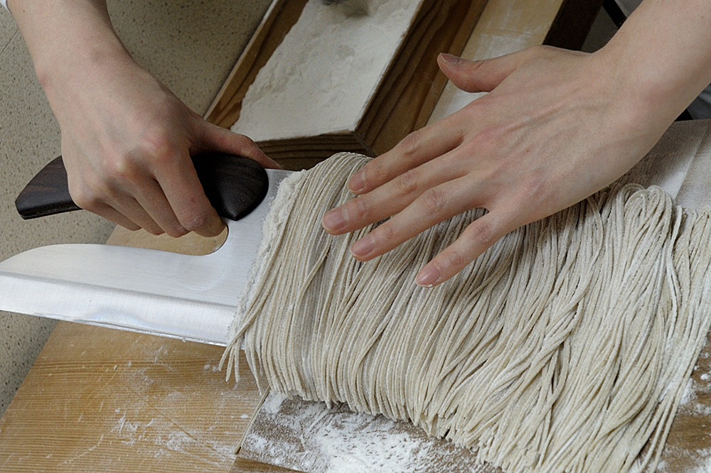 福井県のそばの歴史のスタートラインとも言える、「蕎麦切(そばきり)」と書かれた最も古い古文書が、越前市で見つかっています。「蕎麦切」というのは、私たちが食べている、細くて長い、そばの麺のことです。包丁で切って作るので、江戸の昔は「蕎麦切」と呼ばれました。